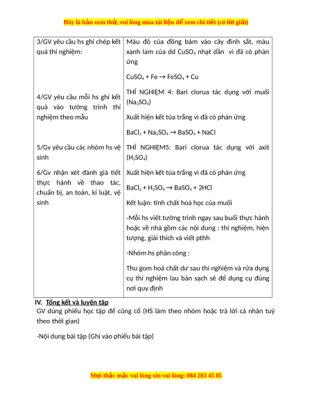 các thao tác của từng thí 3.THÍ NGHIỆM 3: Đồng (II) sunfat tác dụng với nghiệm như: kim loại