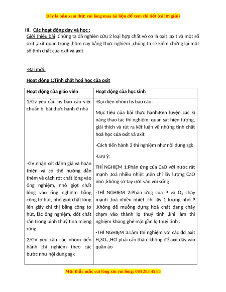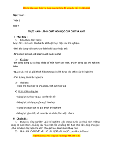 Giáo án Thực hành: Tính chất hóa học của oxi và axit Hóa học 9