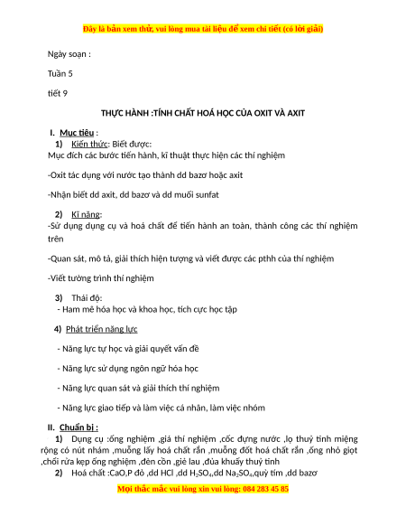 Đây là bản xem th , vu ử i lòng mua tài li u ệ đ xe ể m chi ti t (c ế ó l i ờ gi i ả ) Ngày soạn : Tuần 5 tiết 9