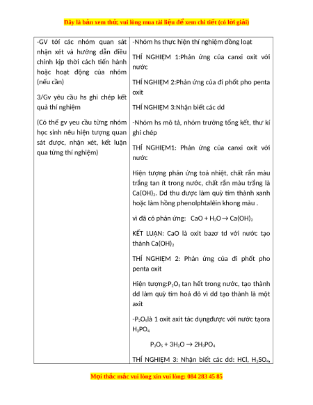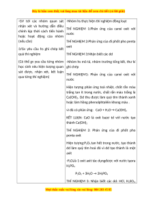 sát được, nhận xét, kết luận THÍ NGHIỆM1: Phản ứng của canxi oxit với qua từng thí nghiệm) nước