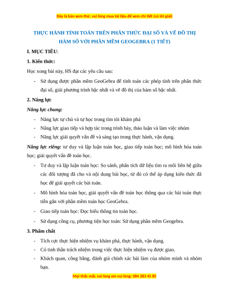 - Sử dụng được phần mềm GeoGebra để tính toán các phép tính trên phân thức
