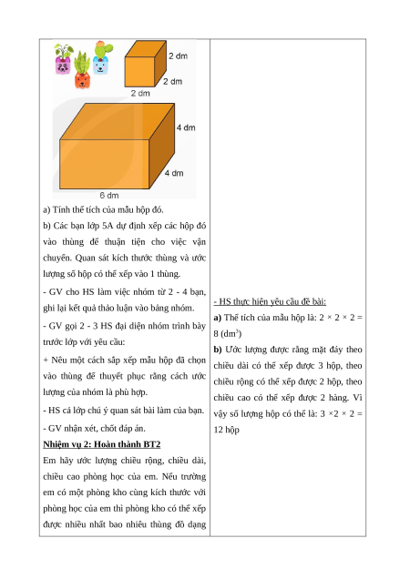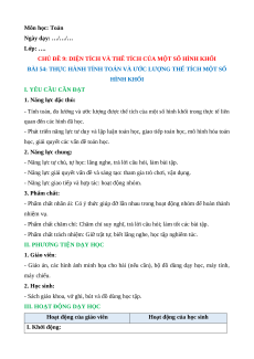 Giáo án Thực hành tính toán và ước lượng thể tích một số hình khối Toán lớp 5 Kết nối tri thức