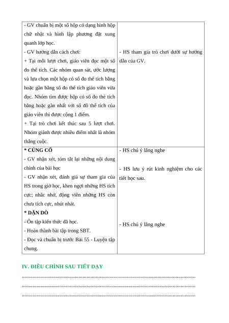 - HS nhớ được cách làm, tính toán và ước lượng thể tích của các hình khối