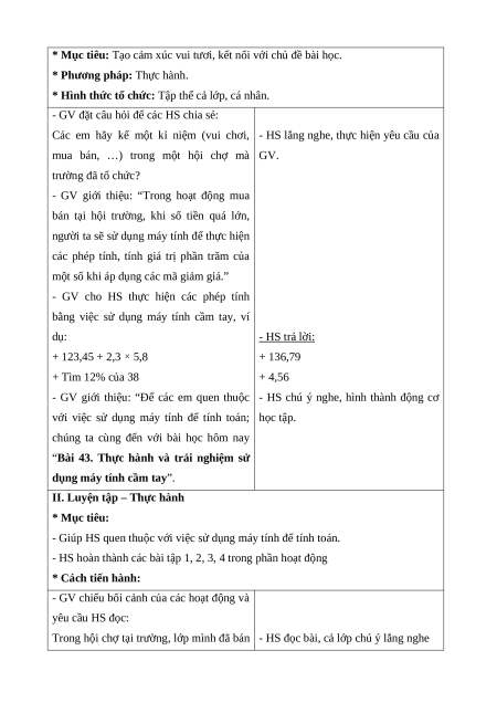 BÀI 43. THỰC HÀNH VÀ TRẢI NGHIỆM SỬ DỤNG MÁY TÍNH CẦM TAY (1 TIẾT)