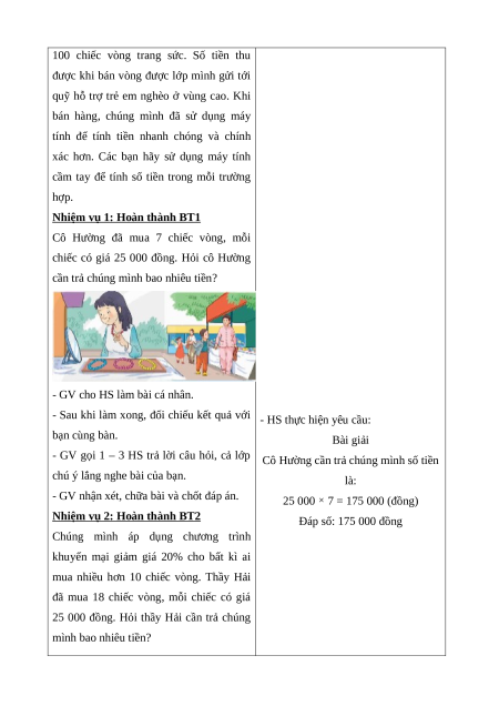 Nhiệm vụ 2: Hoàn thành BT2 Đáp số: 175 000 đồng