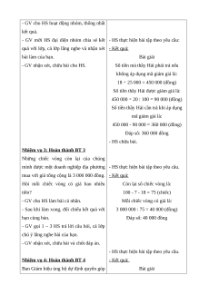 450 000 - 90 000 = 360 000 (đồng) Đáp sô: 360 000 dồng - HS chữa bài.