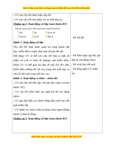 ạ đ ng cá nhân ộ - Các HS khác chú ý l ng ắ - GV cho HS v n ậ d ng ụ ngay ki n ế th c, ứ th o ả lu n ậ nghe, nh n xét ậ . c p ặ đôi trả l i ờ câu h i ỏ - HS nh n ậ bi t ế , nghe GV - GV m i ờ đ i ạ di n m ệ t