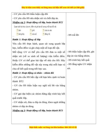ự hành, quan sát xung quanh l p ớ h c, ọ ki m ể đ m ế và ghi chép m t ộ s l ố o i ạ đ v ồ t ậ . Mở r ng: ộ GV có thể yêu c u ầ HS đ a ư ra m t ộ số - HS th o ả lu n c ậ p ặ đôi, ghi nh n