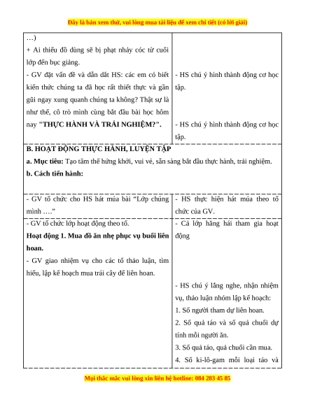 B. HOẠT ĐỘNG THỰC HÀNH, LUYỆN TẬP