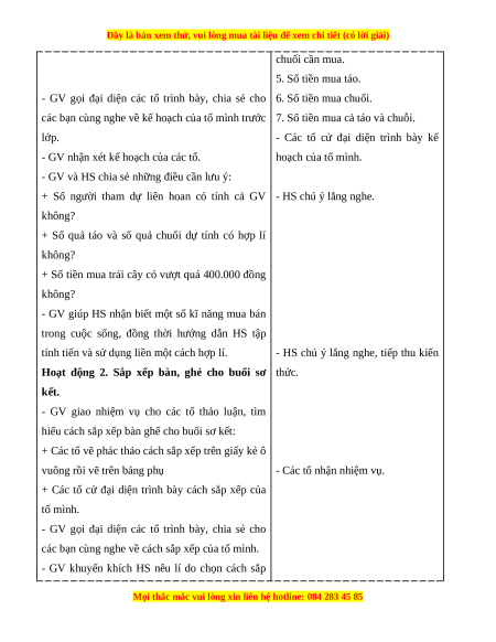 các bạn cùng nghe về kế hoạch của tổ mình trước 7. Số tiền mua cả táo và chuỗi. lớp.