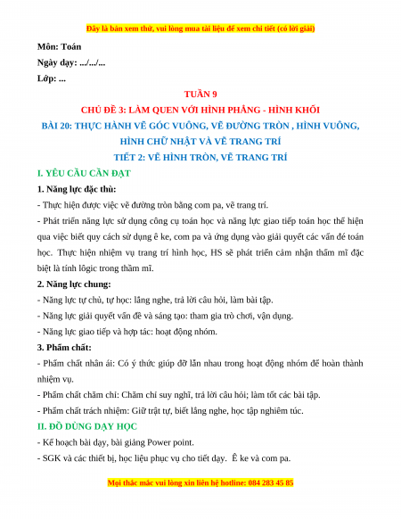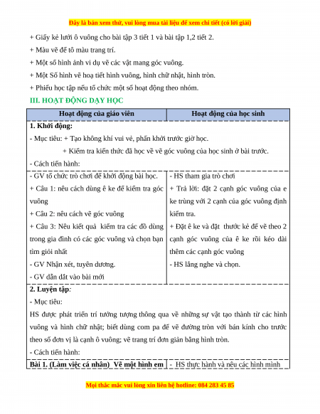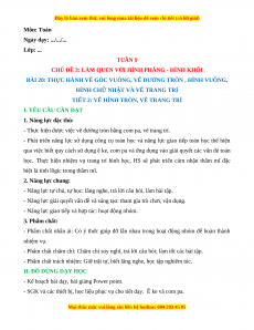 Giáo án Thực hành vẽ góc vuông, vẽ đường tròn, hình vuông,hình chữ nhật và vẽ trang trí Toán 3 Kết nối tri thức