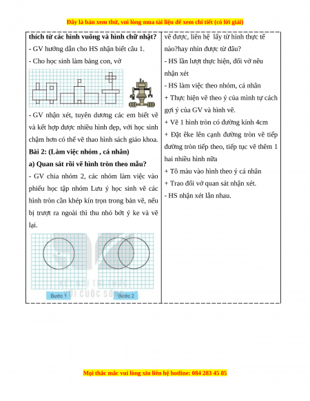 vuông và hình chữ nhật; biết dùng com pa để vẽ đường tròn với bán kính cho trước