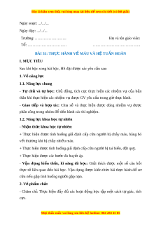 ……………………………….. BÀI 31: TH C Ự HÀNH V MÁ Ề U VÀ H Ệ TU N Ầ HOÀN I. M C Ụ TIÊU Sau khi h c ọ xong bài h c, H ọ S đ t ạ được các yêu c u s ầ au: 1. V năng l ề c ự 1.1. Năng l c chung ự