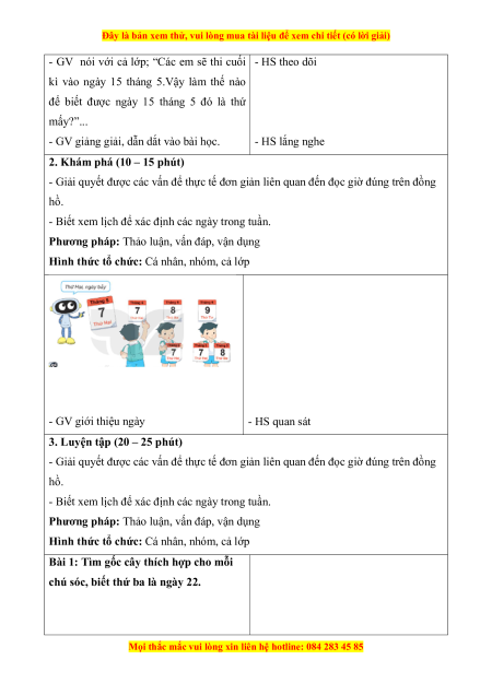 Hình thức tổ chức: Cá nhân, nhóm, cả lớp - GV giới thiệu ngày - HS quan sát