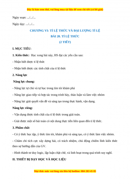 BÀI 20. TỈ LỆ THỨC (2 TIẾT) I. MỤC TIÊU: