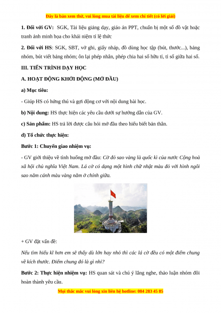 2. Đối với HS: SGK, SBT, vở ghi, giấy nháp, đồ dùng học tập (bút, thước...), bảng
