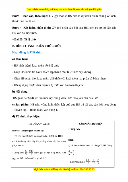 - HS áp dụng được khái niệm tỉ lệ thức vào bài toán thực tế. b) Nội dung: