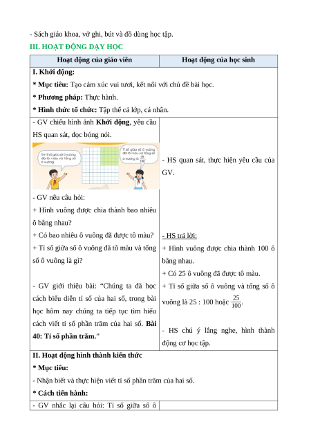 BÀI 40. TỈ SỐ PHẦN TRĂM (2 TIẾT)