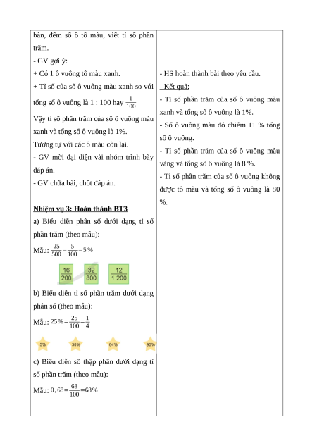 * Mục tiêu: Nhận biết và biểu diễn tỉ số phần trăm.