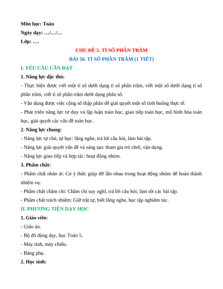 BÀI 56. TỈ SỐ PHẦN TRĂM (1 TIẾT)