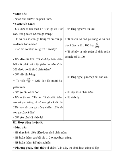 - Nhận biết được tỉ số phần trăm. * Cách tiến hành: