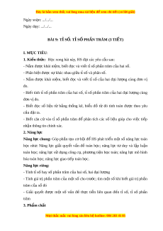 Ố TỈ SỐ PHẦN TRĂM (3 TIẾT) I. M C Ụ TIÊU: 1. Ki n t ế h c ứ : H c ọ xong bài này, HS đ t ạ các yêu c u s ầ au: - N m ắ đư c khái ợ ni m ệ , bi t ế đ c ọ và vi t ế t s ỉ ố ph n t ầ răm c a hai ủ s . ố - Phân bi t ệ đư c ợ s khác ự nhau gi a t ữ s ỉ và phân s ố . ố - N m ắ đư c ợ khái ni m ệ , bi t ế đ c ọ và vi t ế tỉ số c a ủ hai đ i ạ lư ng ợ cùng đ n ơ vị đo. - Bi t ế tính t ỉsố ph n ầ trăm c a ủ hai s , ố t ỉs ố ph n ầ trăm c a ủ hai đ i ạ lư ng ợ cùng đ n v ơ ị đo. - Bi t ế đ c ọ số li u ệ từ b ng ả th ng ố kê, bi u