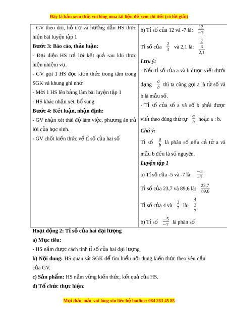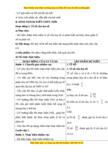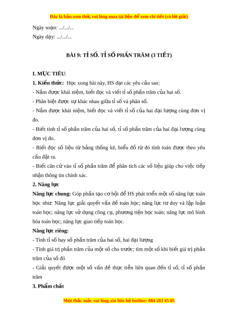 Đây là bản xem th , vu ử i lòng mua tài li u ệ đ xe ể m chi ti t ế (có l i ờ gi i ả ) Ngày so n: ạ .../.../... Ngày d y: ạ .../.../... BÀI 9: TỈ S .