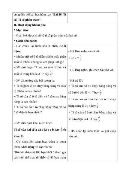 BÀI 36. TỈ SỐ. TỈ SỐ PHẦN TRĂM (2 TIẾT)