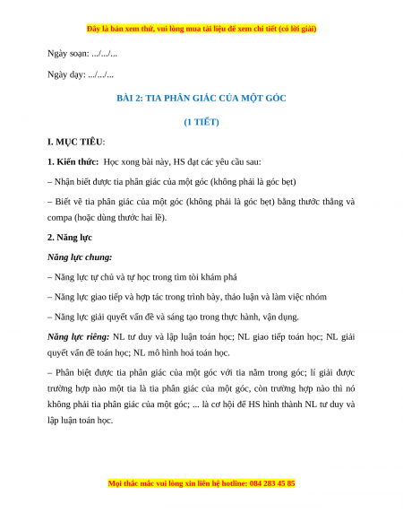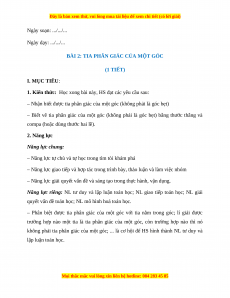 BÀI 2: TIA PHÂN GIÁC CỦA MỘT GÓC (1 TIẾT) I. MỤC TIÊU: