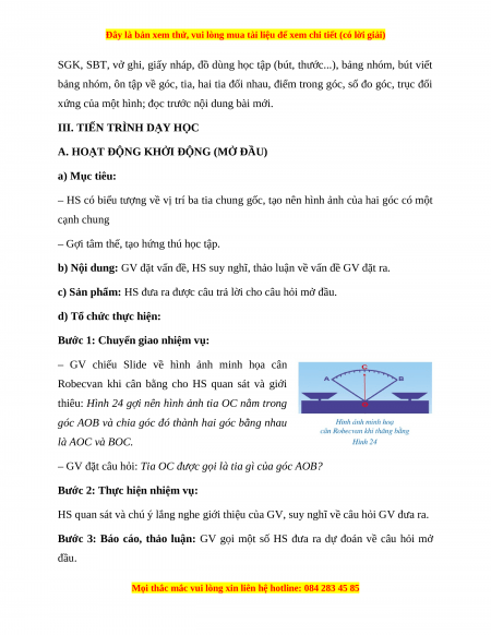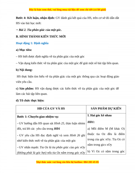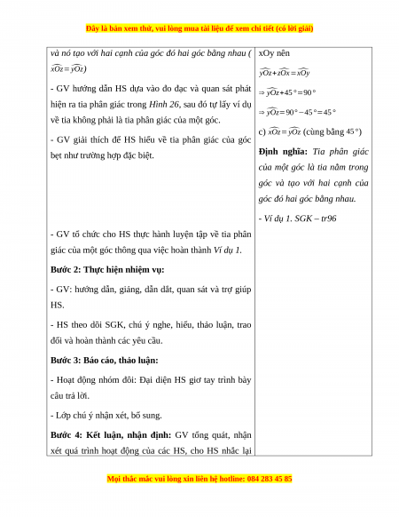 Giáo án Tia phân giác của một góc Toán 7 Cánh diều