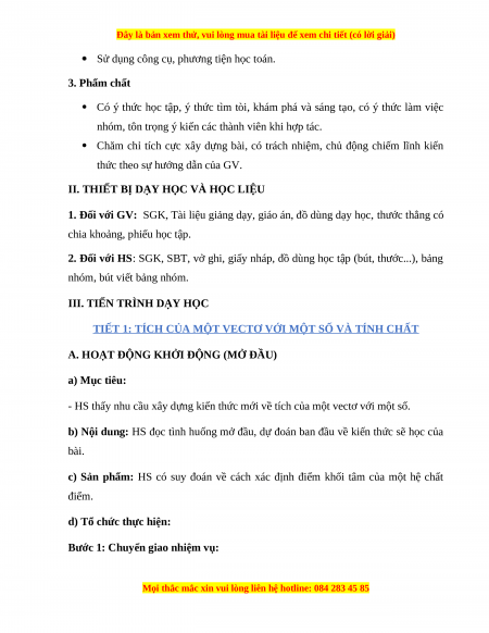 BÀI 9: TÍCH CỦA MỘT SỐ VECTƠ VỚI MỘT SỐ (2 TIẾT) I. MỤC TIÊU: