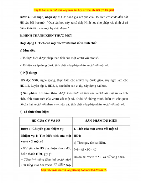 BÀI 9: TÍCH CỦA MỘT SỐ VECTƠ VỚI MỘT SỐ (2 TIẾT)