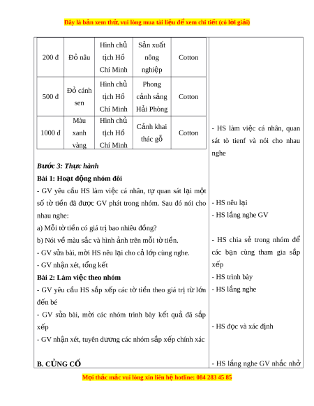 Đây là bản xem th , vu ử i lòng mua tài li u ệ đ xe ể m chi ti t (c ế ó l i ờ gi i ả ) Hình chủ S n ả xu t ấ 200 đ Đỏ nâu tịch Hồ nông Cotton Chí Minh nghiệp Hình chủ Phong Đỏ cánh 500 đ tịch Hồ c nh ả s ng ả Cotton sen Chí Minh H i ả Phòng Màu Hình chủ C nh khai ả - HS làm vi c ệ cá nhân, quan 1000 đ xanh tịch Hồ Cotton thác gỗ