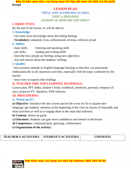 TIẾNG ANH 10 FRIENDS GLOBAL UNIT 1: FEELINGS
