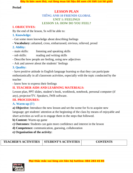 Giáo án Tiếng Anh 10 Friends global | Giáo án Tiếng Anh 10 mới chuẩn nhất