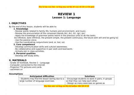 REVIEW 1 Lesson 1: Language I. OBJECTIVES