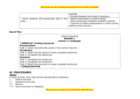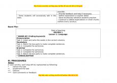 - Continue to define expectations in small chunks (before every activity). Board Plan Date of teaching REVIEW 1 Lesson 1: Language * WARM-UP: Finding keywords Pronunciation