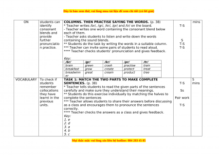 Task 3: Match the two parts to make complete sentences. * CONSOLIDATION III. PROCEDURES Notes: