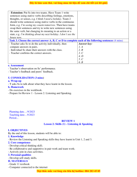 - Prepare for Review 1 - Lesson 2. Listening and Speaking. Planning date…/9/2023 Teaching date…9/2023 Period... REVIEW 1