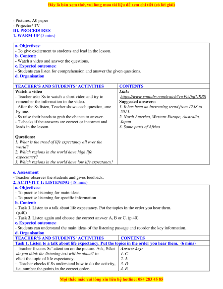 2. ACTIVITY 1: PRONUNCIATION (12 mins) a. Objectives: