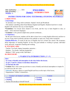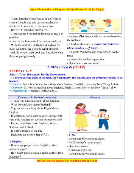 * Content: Some brief notes; Something about England, English . Introduce New Tieng Anh 6