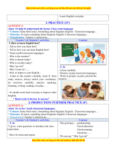 *Vocabulary: Use lexical items related to text book, and the way to learn English in class; at
