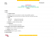STARTER UNIT - LESSON 1: VOCABULARY (PPP) FAMILY I. AIMS: I. AIMS: 1. Language contents:
