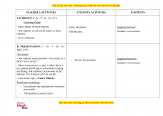 TEACHER’S ACTIVITIES STUDENTS, ACTIVITIES CONTENTS