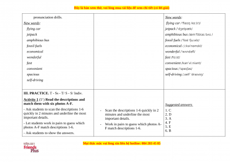 - Vocabulary: flying car, jetpack, amphibious bus, fossil fuels, economical, wonderful, fast, convenient, spacious, self-driving