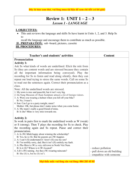 • This unit reviews the language and skills Ss have learnt in Units 1, 2, and 3. Help Ss to