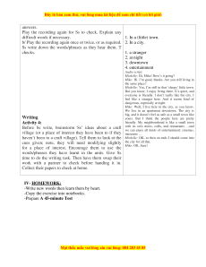 b/ Play the recording again once or twice, or as required. 2. In a city.