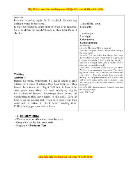 to for help with his homework. 5. Hoa was not sure when to break the sad news to him. Everyday English 1. As far as I know Activity 7: 2. what to do
