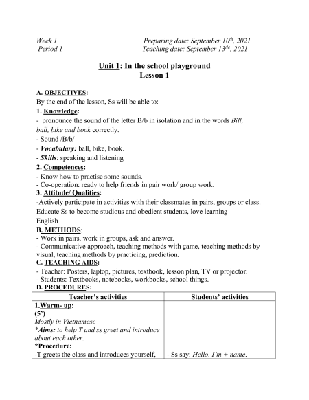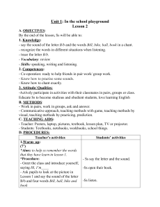 Unit 1: In the school playground Lesson 1 A. OBJECTIVES: