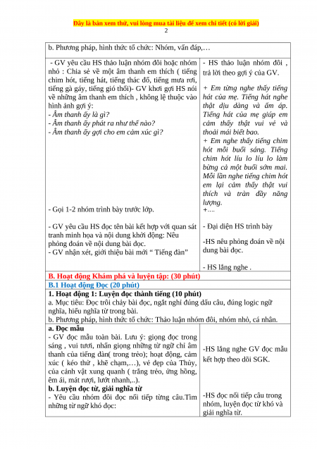 b. Phương pháp, hình thức tổ chức: Thảo luận nhóm đôi, nhóm nhỏ, cá nhân. a. Đọc mẫu